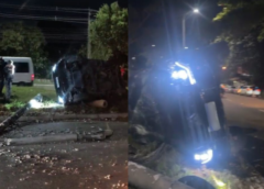 CARRO CAPOTA APÓS BATER EM POSTE NA AVENIDA DO TURISMO