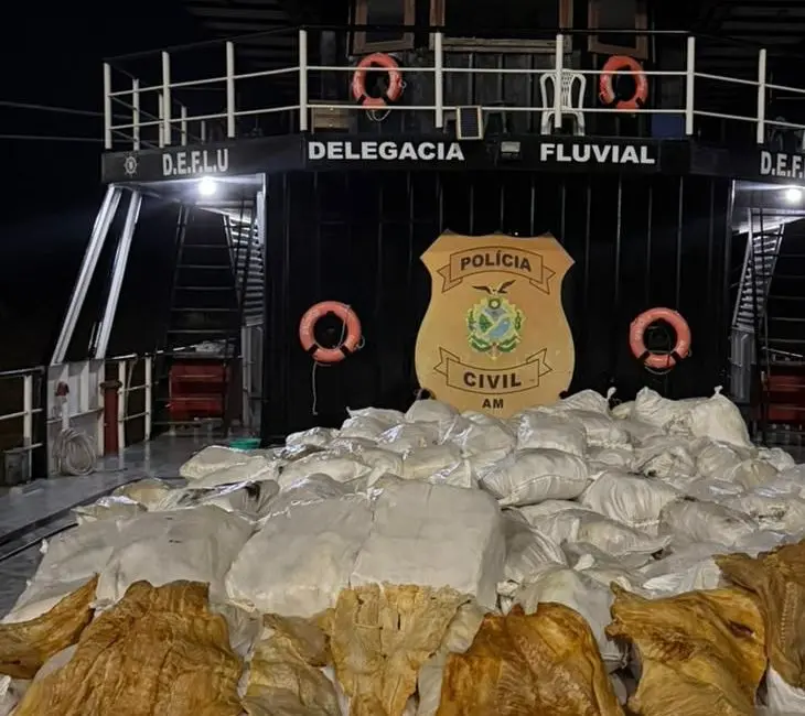 Durante uma ação de fiscalização realizada na sexta-feira (9), a Delegacia Fluvial (Deflu) interceptou uma embarcação no Rio Amazonas, nas proximidades da Comunidade Centenário, em Itacoatiara, no interior do estado. Na abordagem, os policiais localizaram cerca de 12 toneladas de pirarucu seco, volume que ultrapassa 300 sacos do pescado. Segundo as autoridades, a operação foi iniciada após uma denúncia de possível roubo de combustível. No entanto, ao verificarem a embarcação, os agentes constataram que o barco havia saído do Rio Madeira e transportava a carga de forma irregular. A Deflu…