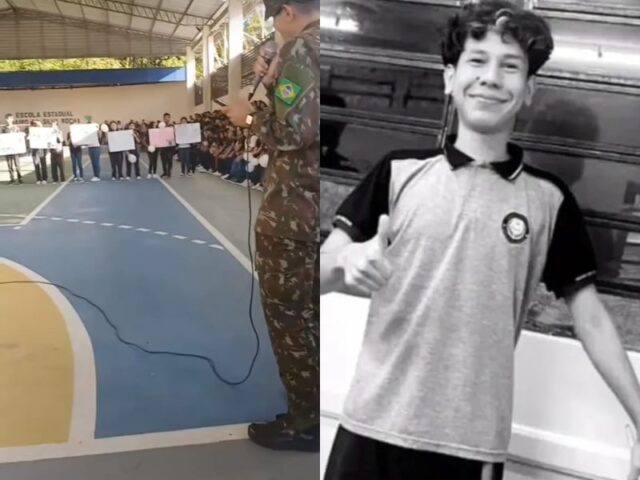 Em vídeos que circulam nas redes sociais, alunos aparecem reunidos na quadra da escola com cartazes pedindo justiça por Fernando. Dentro da sala de aula, colegas decoraram a cadeira onde o adolescente costumava se sentar com mensagens e fotos.