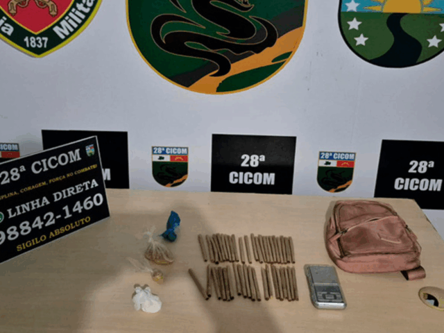 (Foto: Divulgação – PMAM) Manaus (AM) – Um homem, de 25 anos, foi preso nesta quinta-feria (27), no bairro Colônia Antônio Aleixo, zona leste de Manaus, com 41 cigarros de maconha, além de porções de oxi e cocaína A ação foi desencadeada pela 28ª Companhia Interativa Comunitária (Cicom). De acordo com informações preliminares, tudo começou por volta de 1h, após uma denúncia anônima alertar sobre uma movimentação suspeita e possível comércio de drogas na Rua Doutor Geraldo Costa. Ao chegar ao local, os agentes montaram um cerco e localizaram o suspeito.…
