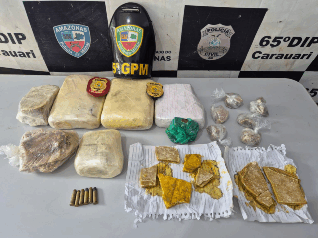(Foto: Divulgação – PC/AM) Carauari (AM) – Um homem e uma mulher, com idades entre 18 e 21 anos, foram presos em flagrante nesta sexta-feira (28) com mais de cinco quilos de maconha do tipo skunk e oxi, além de munições de arma de fogo no bairro Liberdade, em Carauari, interior do Amazonas. (Foto: Divulgação PC-AM) As investigações foram realizada pela 65ª Delegacia Interativa de Polícia (DIP) do município, juntamente com a Polícia Militar do Amazonas (PMAM). Segundo informações, a apreensão ocorreu em uma residência, após a polícia receber informações detalhadas…