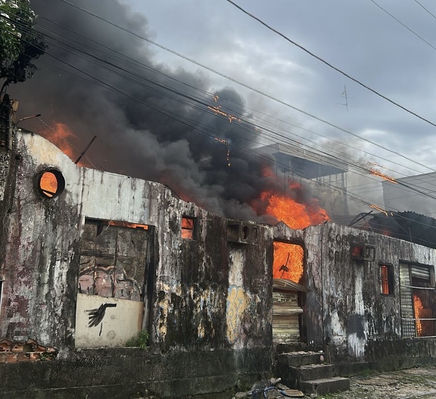 O Corpo de Bombeiros foi acionado por moradores da área e chegou ao local após cerca de 40 minutos. As chamas se espalharam rapidamente, atingindo toda a estrutura do prédio, que possui dois pavimentos.
