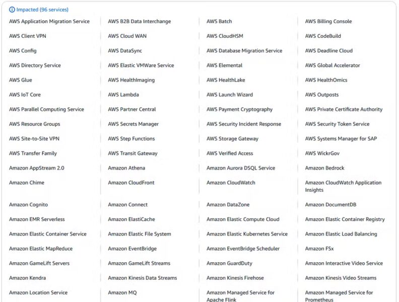 Os primeiros sinais de problema surgiram por volta das 4h11 (horário de Brasília), quando a nuvem começou a investigar aumento nas taxas de erro e latência em vários de seus serviços na região US-EAST-1, que abriga um grande complexo de datacenters no norte da Virgínia, nos Estados Unidos da América (EUA).